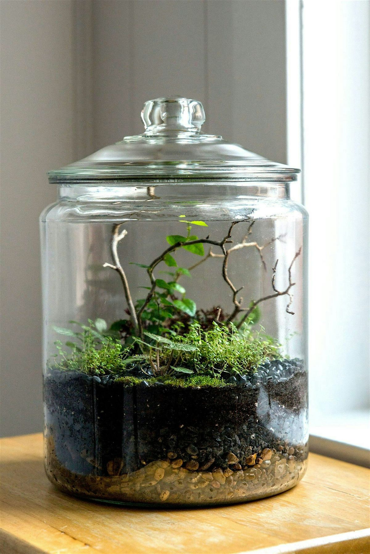 Garden under glass is an opportunity to blend your gardening skills with artistic design and a love for beautiful landscapes in miniature form. You will be given a 3-quart apothecary jar with lid, tiny plants, mosses, charcoal, potting soil, gravel and a variety of rocks, stones and wood elements to make your scene beautiful and intriguing.