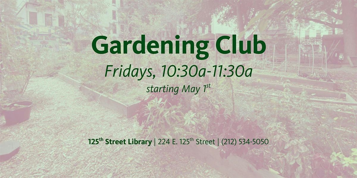 Please wear clothes/shoes you can get dirty and bring water. We will meet at the 125th Street Library at 10:30am and walk to the garden together.