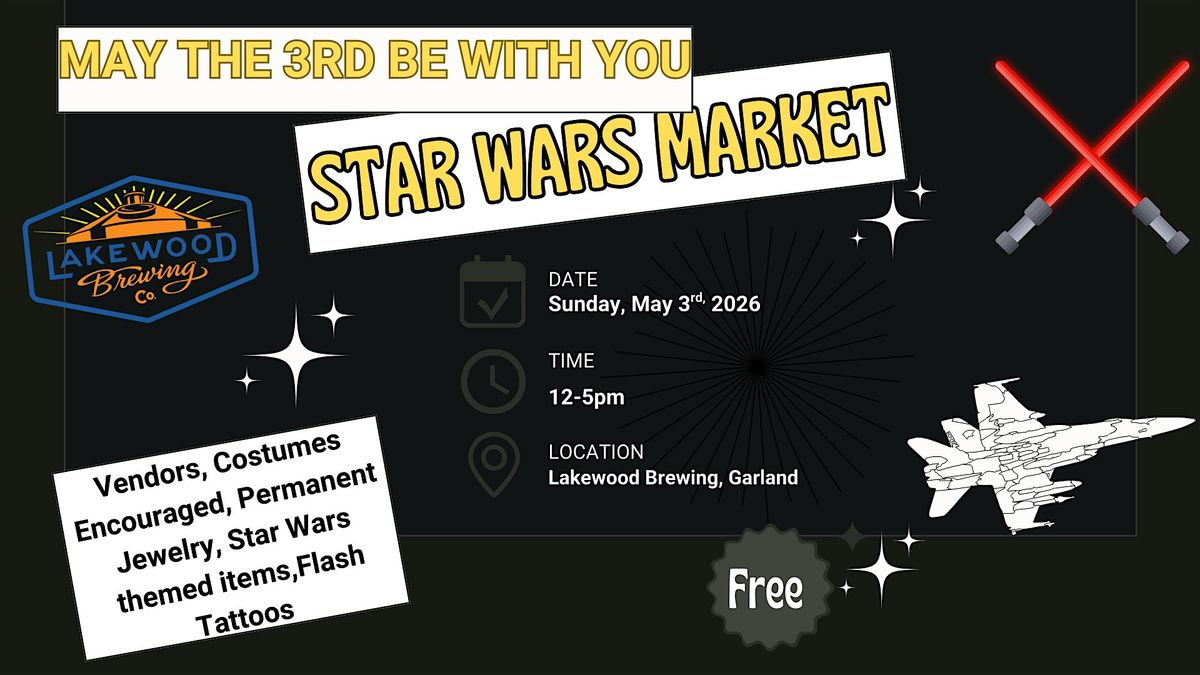 Join us for an out-of-this-galaxy afternoon as we celebrate May the 3rd Be With You at Lakewood Brewing in Garland! This Star Wars–themed market brings together local vendors, immersive experiences, and galactic vibes—all in one epic event.