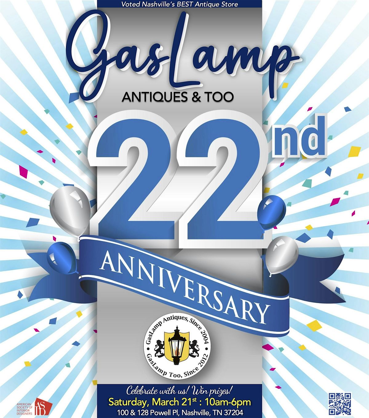 GasLamp Antiques and GasLamp Too will mark year 22 with a party and gift card drawings on Saturday, March 21, 2026, from 10 a.m. to 6 p.m..