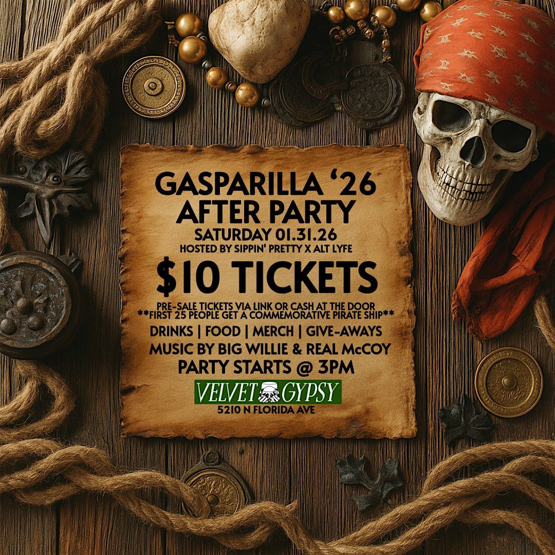 Welcome to the Gasparilla 2026 Sunset Party at Velvet Gypsy! Get ready for a night of fun, music, and good vibes on January 31, 2026 at 4:00 PM (Eastern Time). Join us for a memorable evening as the sun sets and the party begins. Don't miss out on this exciting event filled with great company and fantastic music. See you there!