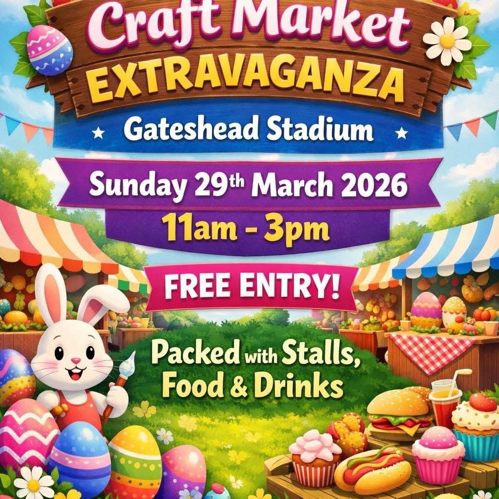 Join us at Gateshead Stadium for an Easter Market. With incredible stalls, food and drinks.A perfect Sunday out