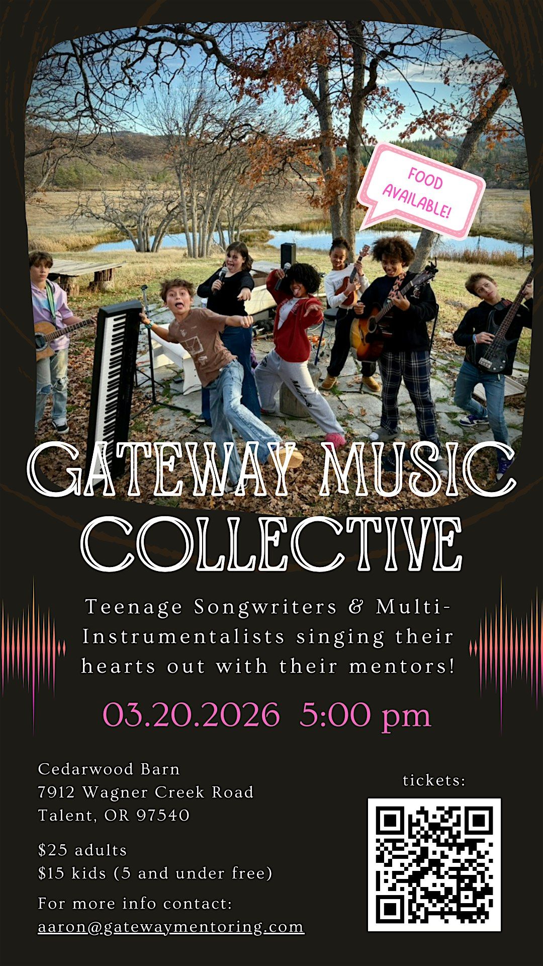 Join us on March 20th for a Spring Equinox gathering hosted by Gateway Music Collective, a program of the non-profit Gateway Mentoring. As winter gives way to spring, youth and mentors will share the original songs they have been writing through the darker months—songs about nature, courage, the questions that matter, and the stories living in their hearts. This multi-generational performance blends music and storytelling in an intimate, connective evening where the audience becomes part of the circle. Come witness and support young people who have taken the brave step of writing and performing their own songs, and help us grow the Gateway Mentoring Scholarship Fund so more youth can join this life-changing creative journey.