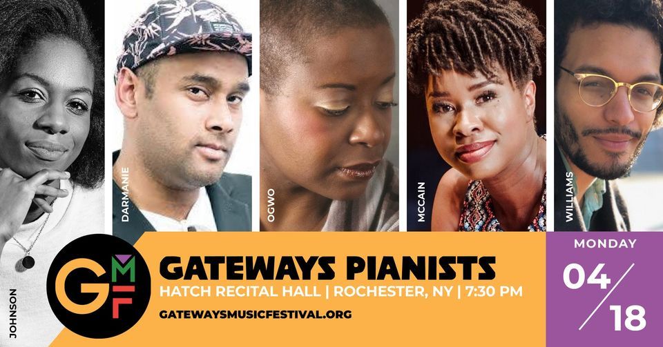 Five world-class pianists take the stage to perform new works and old classics from Bach to Brahms and from Price to Walker. All with active performing and teaching careers, these musicians hail from Tacoma, Washington to Toronto Canada to New York City. They frequently partner with Gateways orchestra players in chamber music concerts and performances but in this recital, they perform as soloists. Featured pianists are Mikael Darmanie, Tabitha Johnson, Artina McCain, Nnenna Ogwo and Joseph Williams.