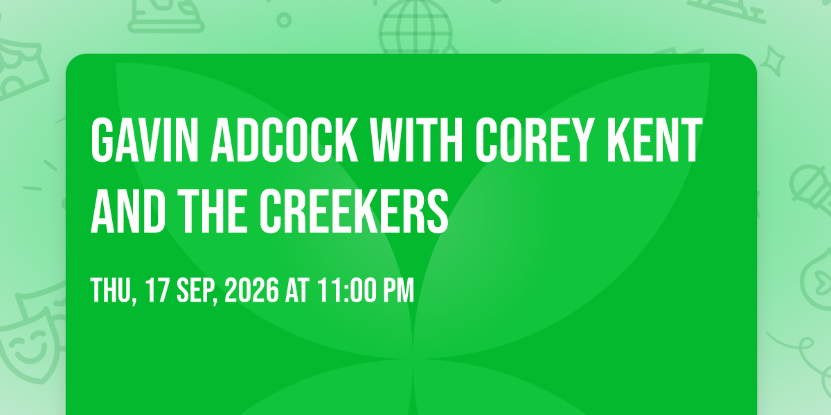 π Location: 33.4931, -101.847π Welcome to Gavin Adcock with Corey Kent and The Creekers, where dreams come alive and possibilities are endless! ποΈ Join us at Cook's Garage in the heart of Lubbock, TX for an event that defies expectations. π On September 17th, 2026 at 11:00 PM, be part of something truly extraordinary as we bring together innovation, entertainment, and pure magic. β¨ Every aspect has been carefully designed to ensure an unforgettable experience for all our guests. Whether you're seeking adventure, inspiration, or simply a break from the ordinary, this event promises to deliver beyond your wildest dreams. π Prepare for a journey into the extraordinary!