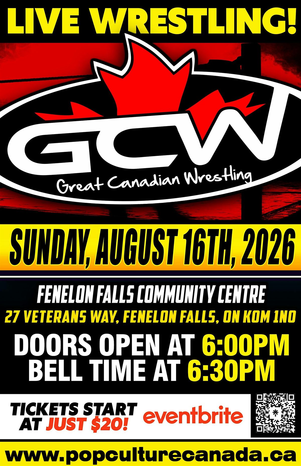 GCW : Fenelon Falls : August 16th : LIVE WRESTLING