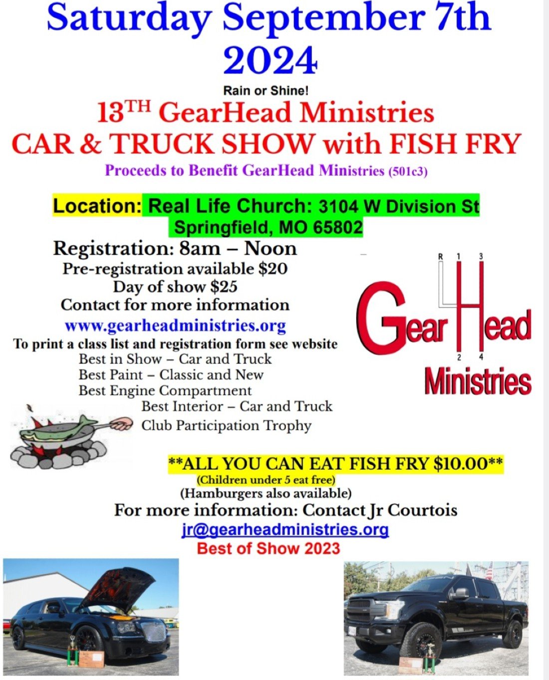 Car &Truck show and fish fry to benefit GearHead Ministries (501c3)