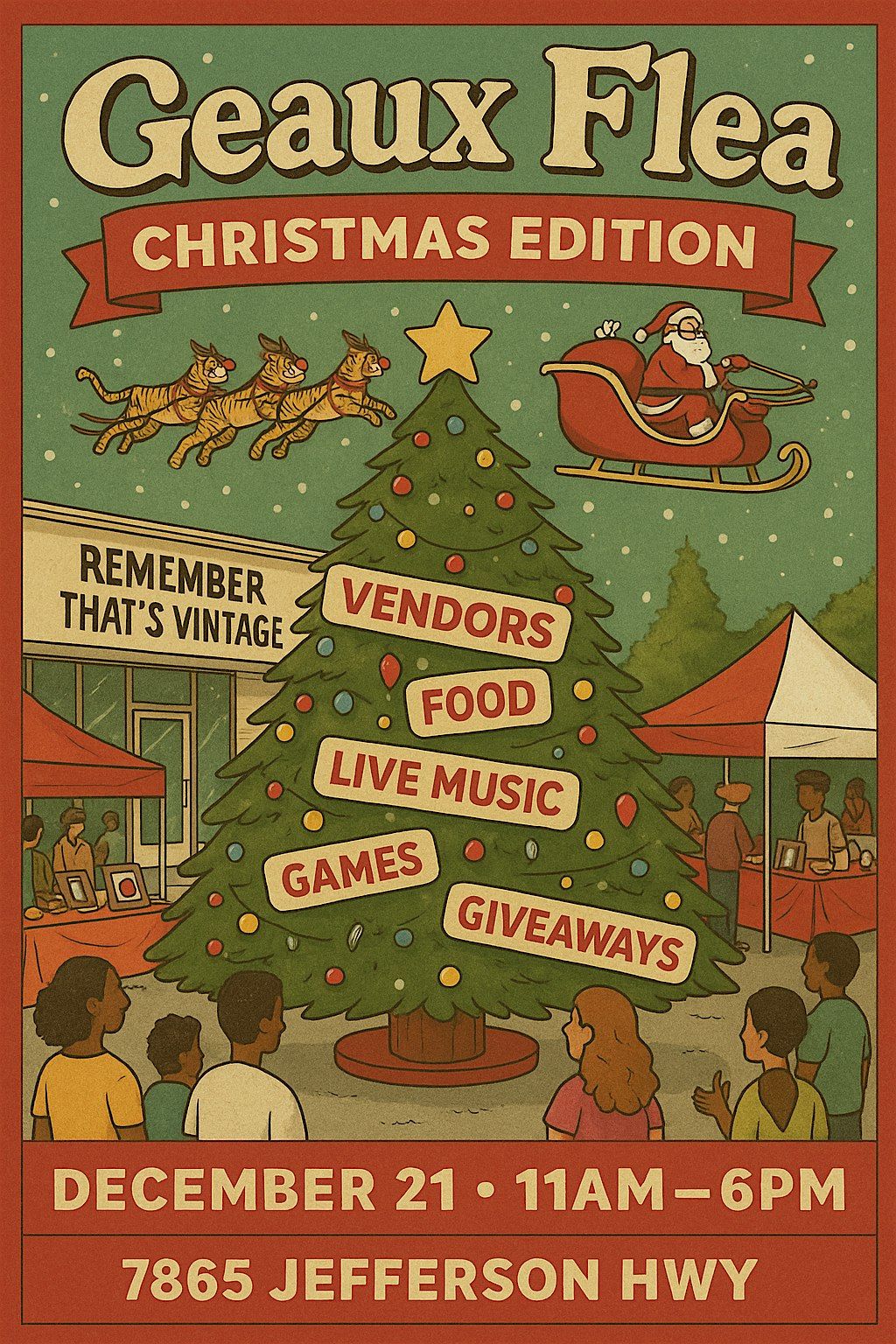 Join us in person for a fun-filled day of hunting down unique finds, vintage treasures, and cool crafts. Whether you're a seasoned flea market pro or just looking to explore, Geaux Flea is the place to be. Chat with local sellers, discover hidden gems, and soak up that awesome flea market vibe. Don't miss out on all the excitement — let's Geaux Flea together!