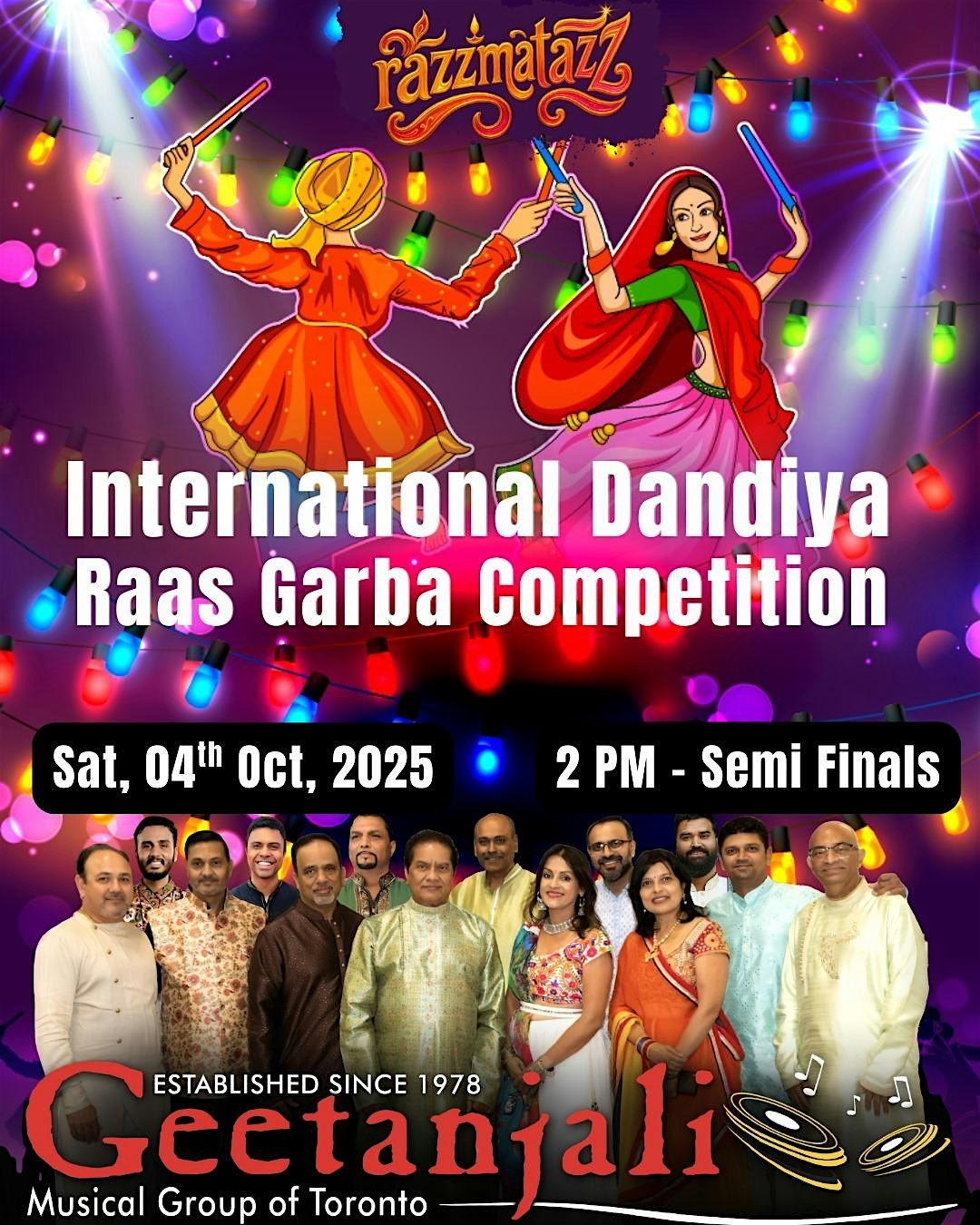 Get ready for a night of fun and festivities at the Geetanjali Group FREE Dandiya Raas Garba - Semi Finals event! Join us at Mississauga Celebration Square for an evening filled with music, dance, and excitement. Put on your best traditional attire and come ready to dance the night away. Whether you're a seasoned dancer or just looking to have a good time, this event is perfect for everyone. Don't miss out on the chance to experience the energy and joy of Dandiya Raas Garba - see you there!