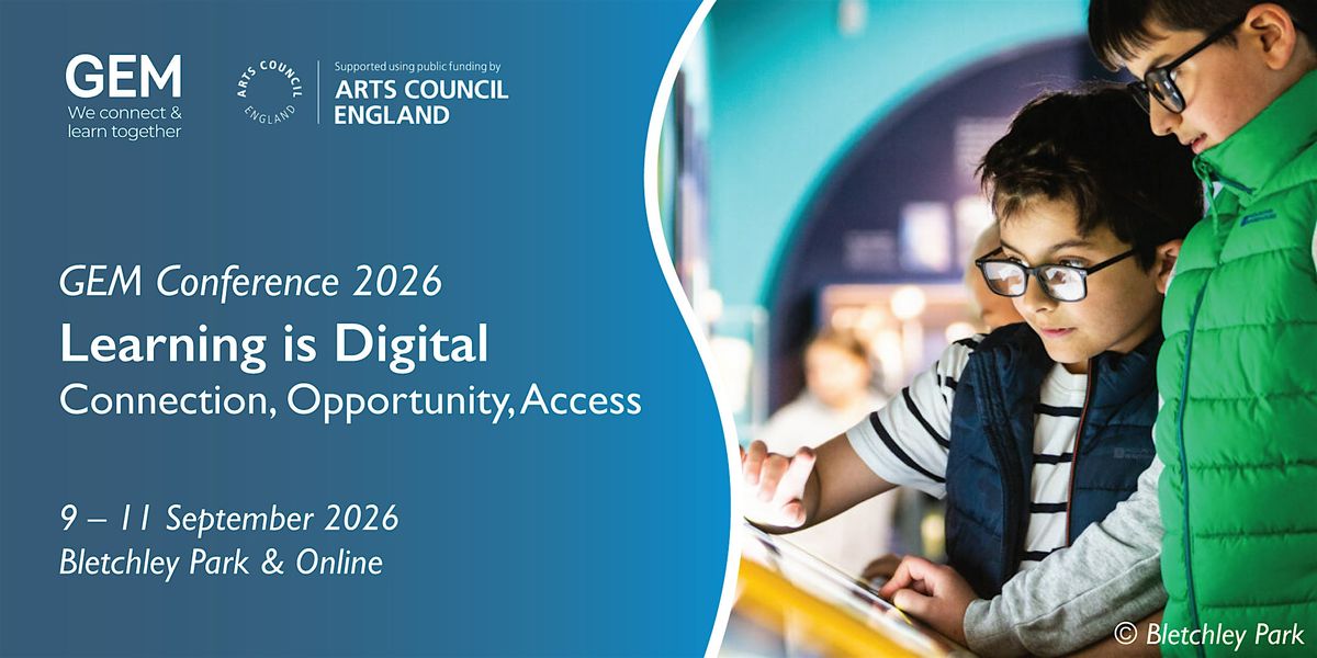 GEM Conference 2026: Learning is Digital will take place on 9-11 September 2026 at Bletchley Park and online. Join museum and heritage professionals from across the UK and beyond for a conversation about quality and inclusive museum learning, and how digital technology and online learning can help us develop new audiences, improve access and design innovative and engaging programmes.