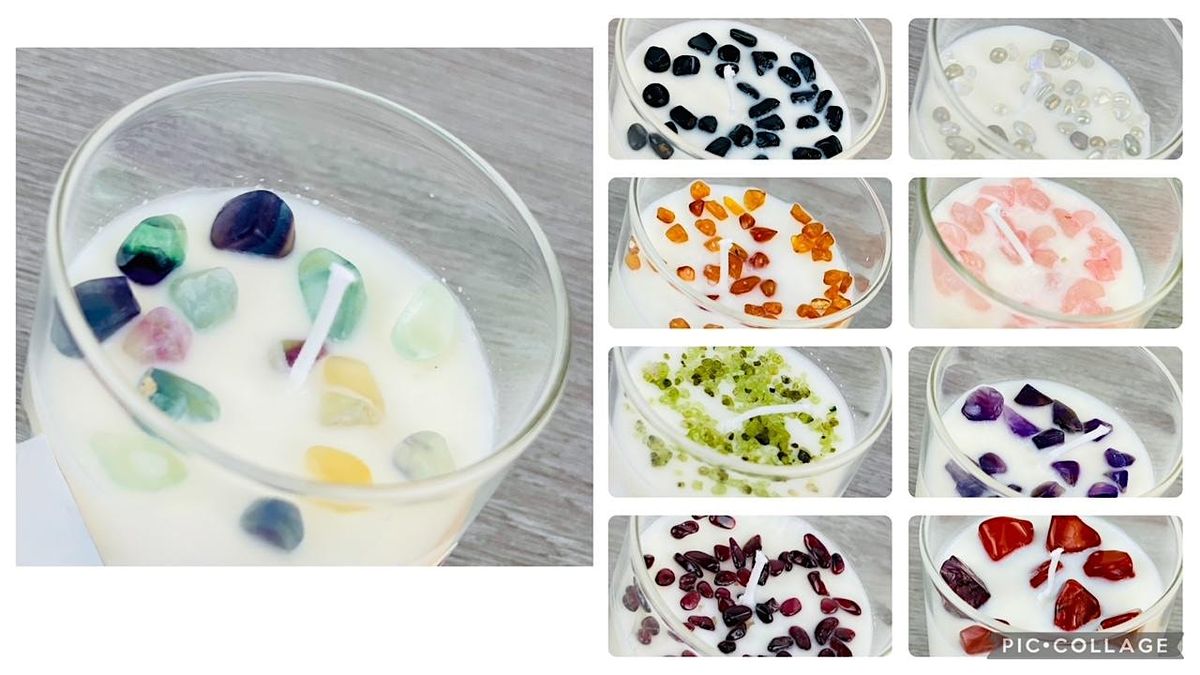 You’ll work with soy wax and choose from a variety of beautiful glass jars and tins in different colors and styles. A wide selection of fragrances—seasonal and everyday favorites—will be available to customize your candles. Then top your candle with natural gemstones! We have many to choose from in smaller chips up to around 1" stones including: amethyst, garnet, citrine, fluorite, peridot, moonstone, rose quartz, sodalite, obsidian, red jasper, amber, charoite, and so many more! We’ll also cover the ingredients, science, and simple math behind making perfect candles every time, giving you the knowledge and confidence to continue creating at home.
