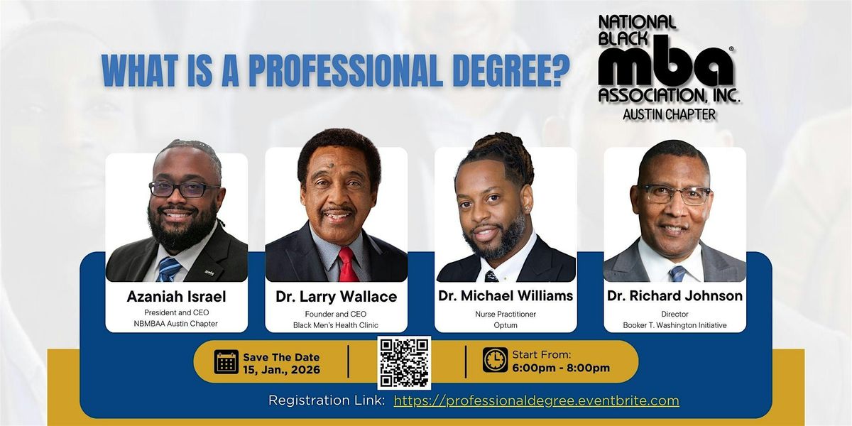 The National Black MBA Association – Austin Chapter invites members, partners, and the broader community to attend this official General Body Meeting, featuring a timely panel discussion on the future of professional degrees and federal student aid policy.