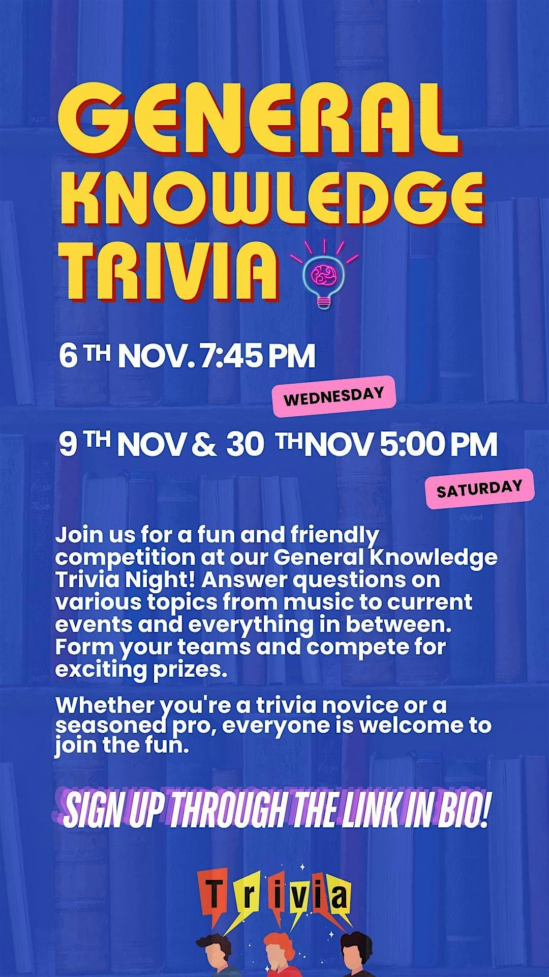 Join us for a fun and friendly competition at our General Knowledge Trivia Night! Answer questions on various topics from music to current events and everything in between. Form your teams and compete for exciting prizes.