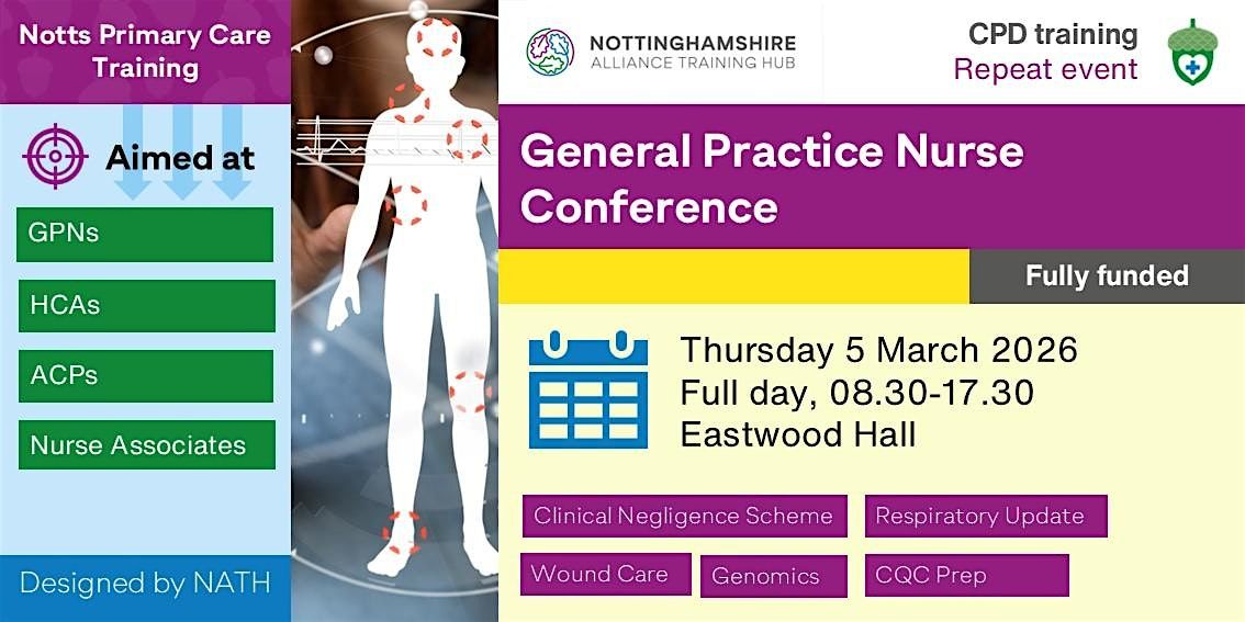 This event is planned because respondents to the Nottinghamshire Alliance Training Hub (NATH) Primary Care Training Needs Analysis (TNA) 2024/25 suggested the topic as a local training need.