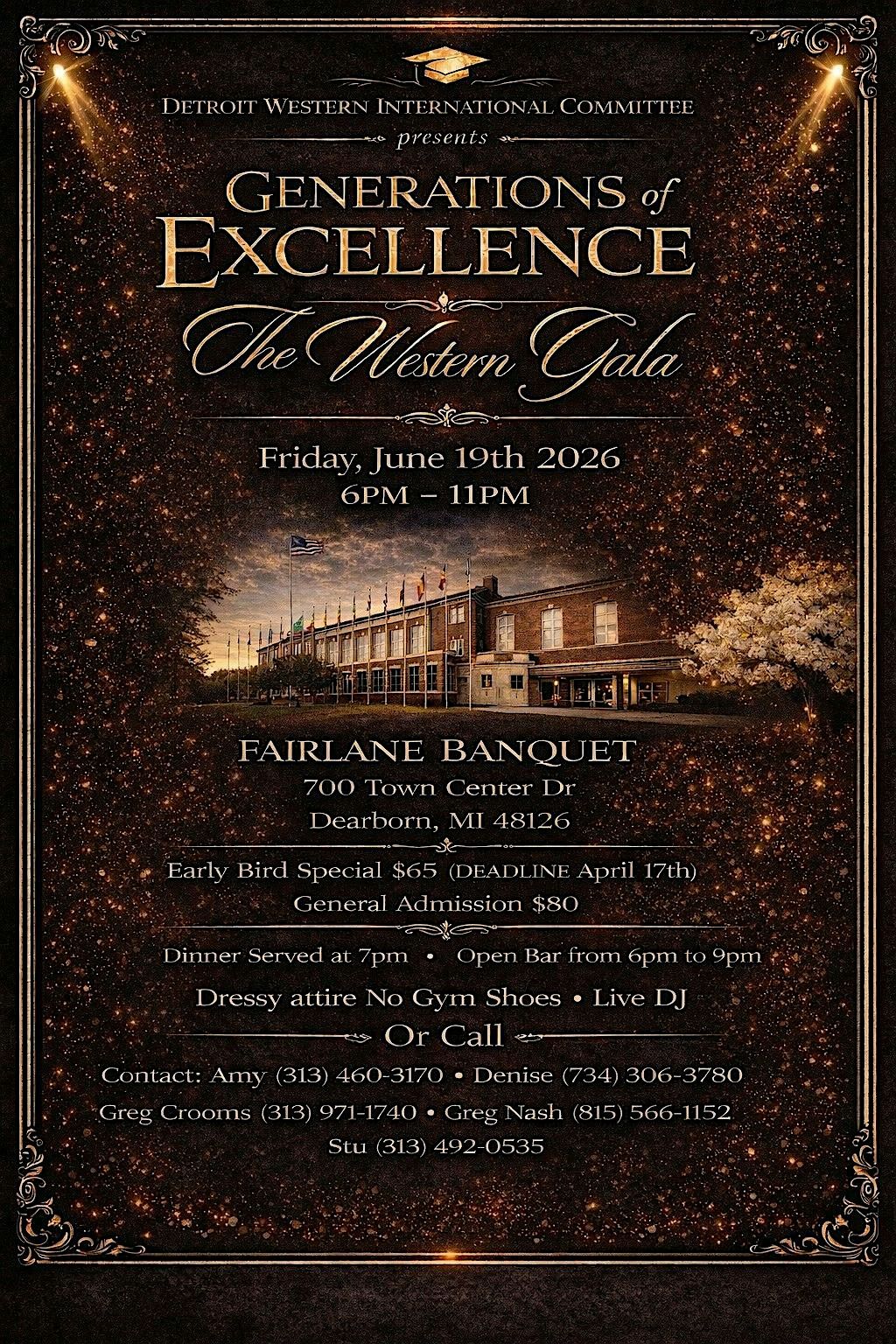 Join us for an unforgettable evening at the Fairlane Banquet Center on June 19, 2026 at 6:00 PM (EDT). Celebrate excellence, connect with amazing people, and enjoy a night full of fun and inspiration. Don’t miss out on this special event that brings together the best of Western high in a relaxed, friendly atmosphere. See you there!