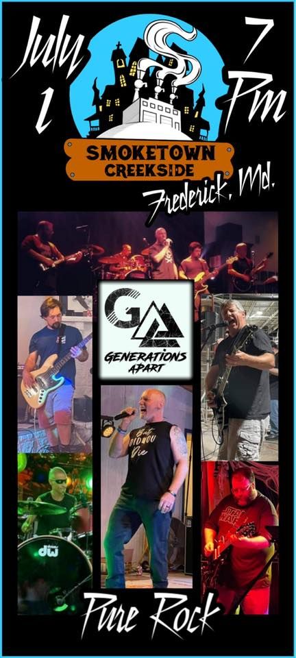 Generations Apart gets to rock Smoketown Creekside for an entire evening of Rock N Roll, kickass beverages and an awesome atmosphere!!