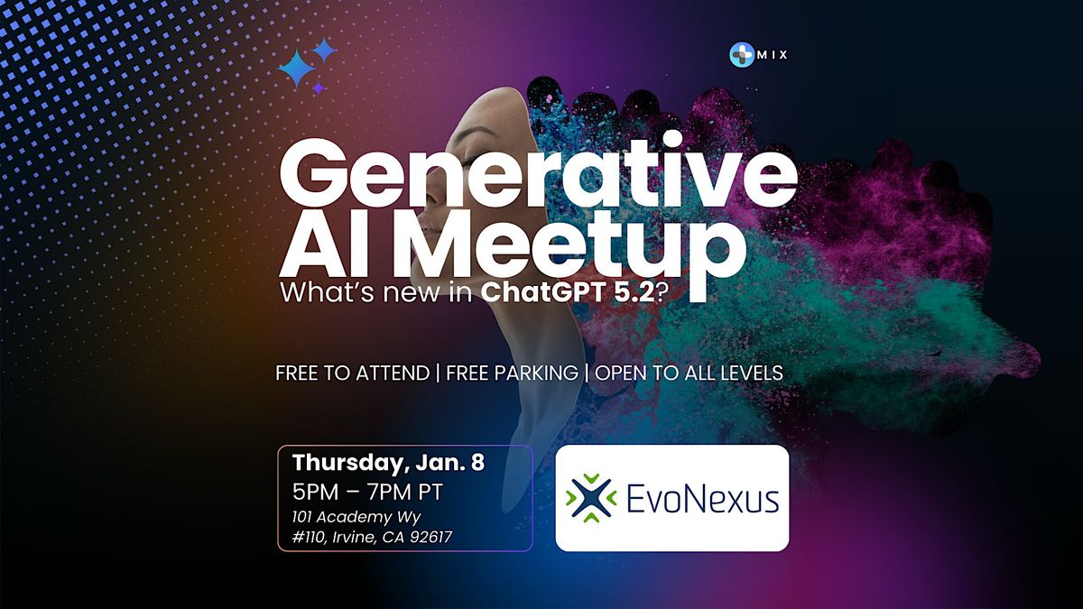 Join EvoNexus Irvine for an evening exploring the next wave of generative AI and what it means heading into 2026.