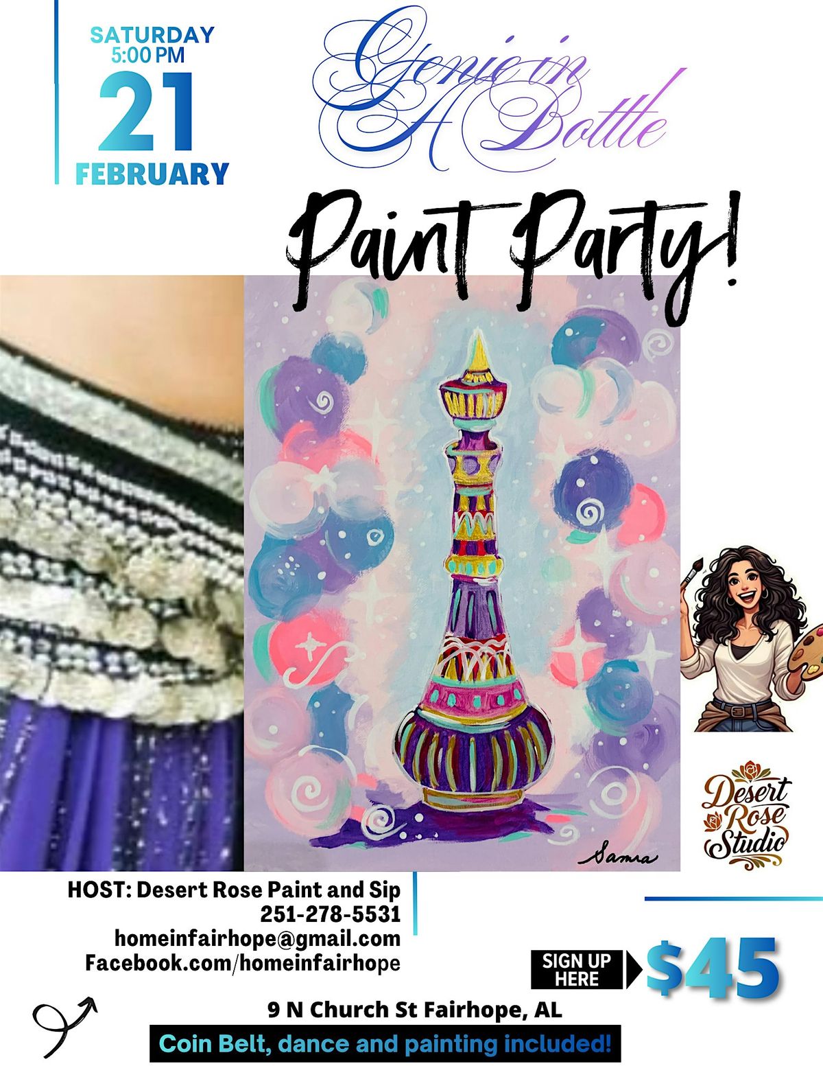 Get ready to unleash your inner artist at our Genie in a Bottle Paint Party! This in-person event is all about fun, creativity, and good vibes. Come join us for a colorful night of painting, dance, laughs, and friends. No experience needed—just bring your imagination and get ready to make some magic on canvas! The Coin belt is yours to keep!