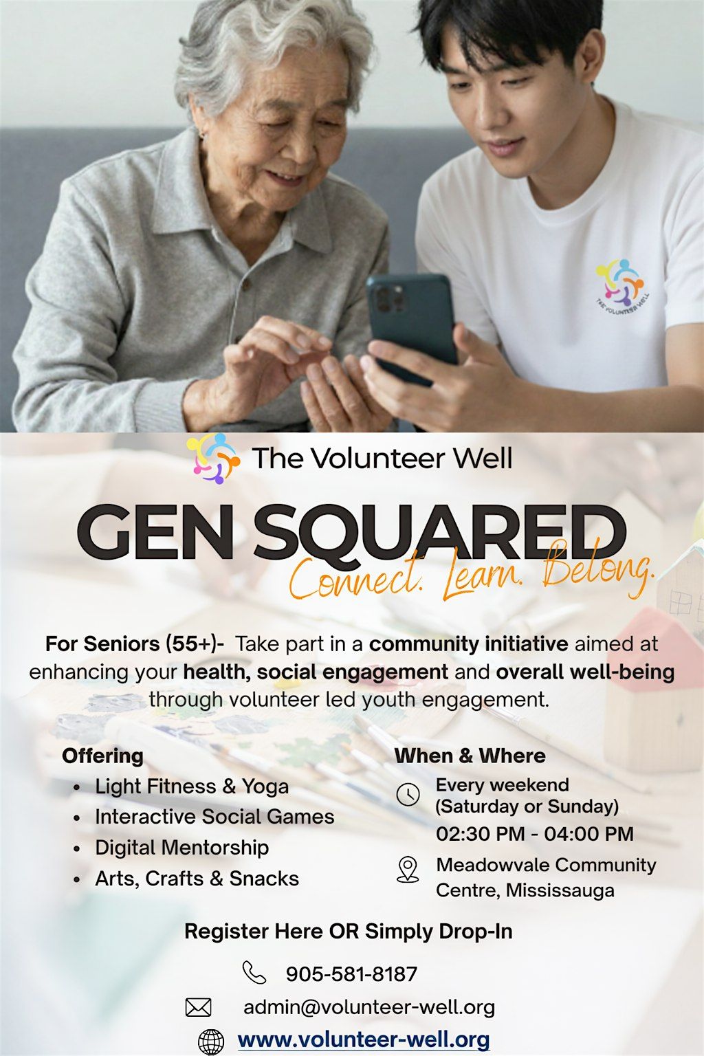 Join us in person at the Mississauga Meadowvale Community Center for the GenSqaure Senior Program!