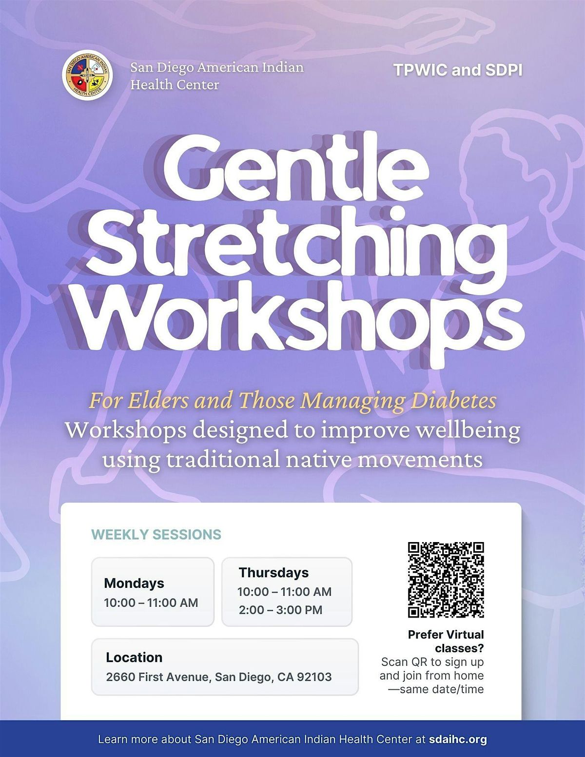 The Gentle Stretch Workshop offers a safe, low-impact way to improve flexibility, mobility, and overall wellness. Participants will be guided through simple stretching movements designed to reduce stiffness, ease stress, and promote relaxation. This workshop is especially beneficial for elders, individuals living with chronic conditions such as diabetes, or anyone seeking a gentle approach to fitness. No prior experience is required, and all movements can be adapted to meet different comfort levels.