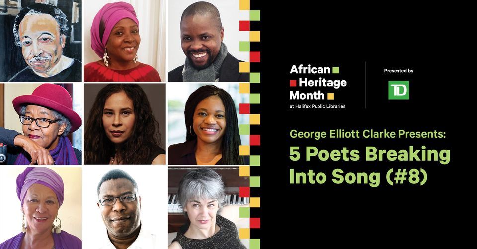 Since 2020, George Elliott Clarke, the 7th National Poet Laureate (and self-identifying Africadian “exile”) has enlisted Canadian composers to set the poems of Canadian icons including Leonard Cohen, Louise Bernice Halfe, Gwendolyn MacEwen, and Al Moritz to music. Joining George for the latest edition of his patented series will be Afua Cooper, Amatoritsero Ede, Sylvia Hamilton, El Jones, and Monica Mutale. Come enjoy hearing the poets read from their works, and listen to how local composer Nevawn Patrick has set their poetry to music performed by vocalist Linda Carvery with pianist Holly Arsenault.