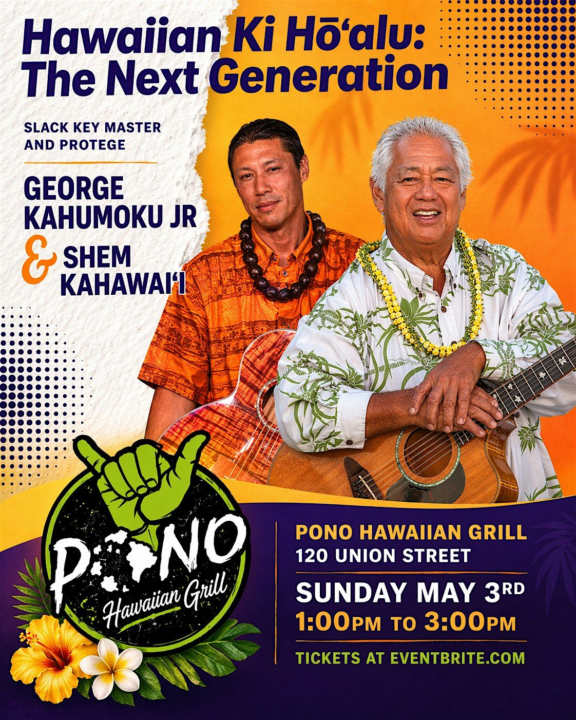 George Kahumoku Jr & Shem Kahawaii, The Pono Hawaiian Grill Sunday May 3rd