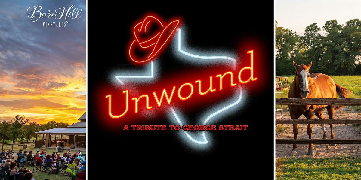Saturday, May 30th— 🎶 Join us for an unforgettable evening of LIVE MUSIC with Unwound, covering the very best of George Strait! Sing along to hits like All My Ex's Live in Texas, Amarillo By Morning, Carried Away, Check Yes or No, Ocean Front Property, You Look So Good in Love, The Chair, Troubadour, and many more!