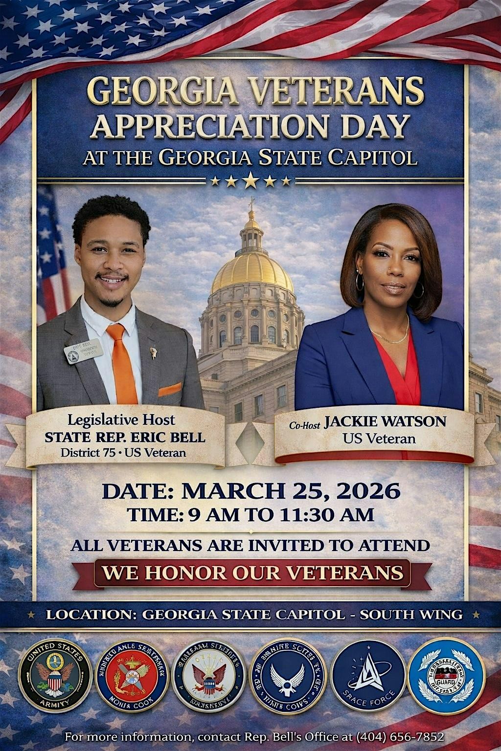 Join us for Georgia Veterans Appreciation Day, a special in-person event dedicated to honoring our heroes! It's a great chance to connect, celebrate, and show gratitude for the incredible service of our veterans. Bring your friends and family to enjoy a day full of respect, fun, and community spirit. Don't miss out on this meaningful occasion to say thank you in person!