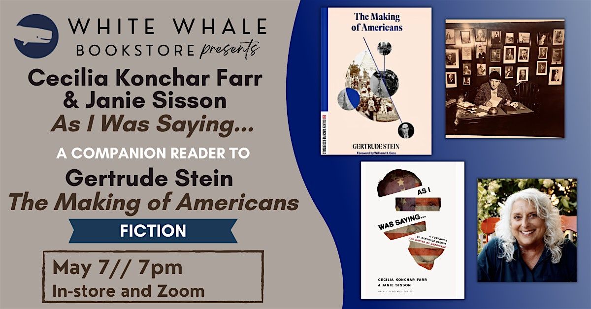 White Whale is proud to be part of the rich, literary community (and history!) of Pittsburgh. We are honored to collaborate with Cecilia Konchar Farr, Dean of the College of Liberal and Creative Arts at West Liberty University, to celebrate the recent re-issue of Gertrude Stein's The Making of Americans, one of the most influential and experimental novels from the modernist era. Gertrude is a Pittsburgh treasure, and we are ecstatic to celebrate this pivotal novel. We are excited to host Cecilia Konchar Farr who co-wrote a guide to reading the novel, As I was Saying..., to help readers find their way into this exciting but difficult experimental novel with just a little help.
