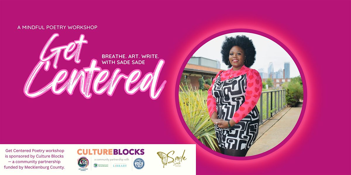 Join us for the 5th installment of Get Centered: A Mindful Poetry Workshop, designed to ignite your creativity through alternative storytelling. Led by Sade Sade, this session offers a unique space to breathe, art, write, and challenge conventional storytelling methods.