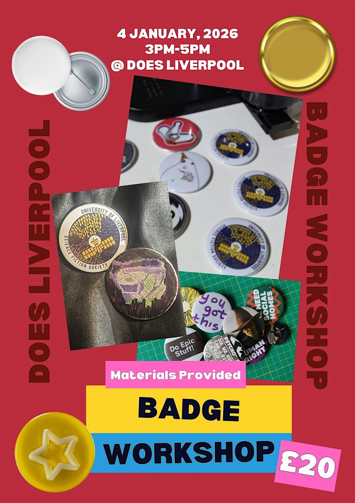 No skills needed, no stress - just ideas, creativity, and a bit of hands-on fun. For £20, everything is provided, and you’ll go home with badges you can wear, gift, or keep as a reminder of starting the year creatively.