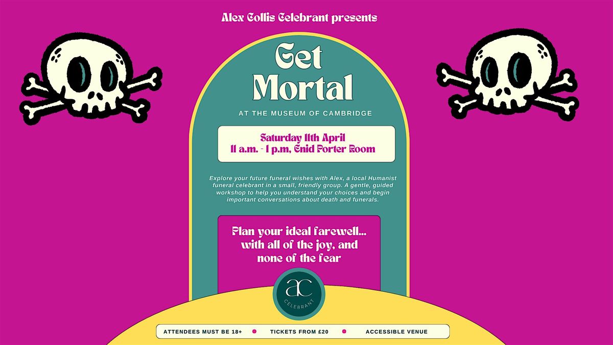 Over two hours, in a gentle, relaxed and friendly environment hosted by me, you’ll be invited to develop your own language around death and dying, and encouraged to think about your own end of life wishes. You’ll also be able to record those wishes using the Get Mortal packs devised by the brilliant Dead Good Legacies, that you can share with your nearest and dearest.