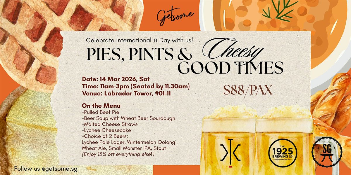 Get ready for a fun-filled afternoon packed with your favorite pies, refreshing pints, and loads of cheesy vibes! This in-person event is all about good food, great drinks, and even better company. Whether you're a fan of savory pies or just here for the laughs and pints, it's the perfect way to unwind and make some awesome memories. Bring your friends and come hungry for good times!
