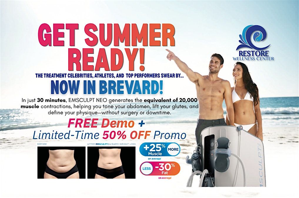Join us for a limited-time Emsculpt event where you can try the treatment FREE and unlock exclusive 50% OFF pricing.