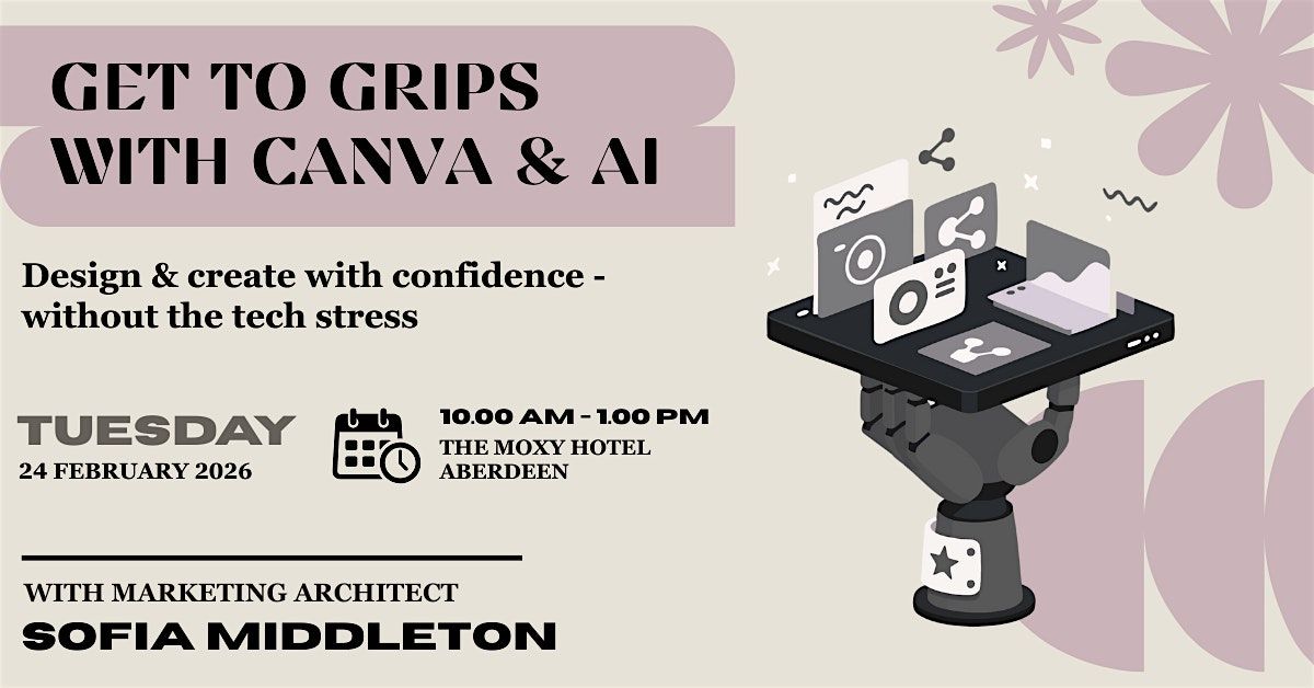 Does the thought of "keeping up" with design and AI make you want to close your laptop? You aren't alone. This workshop is designed specifically for those who want to stop feeling left behind and start using these "super-assistant" tools to grow their business with confidence. Led by Sofia, a Marketing Architect and Expert Digital Marketer, this is a "doing" session where we move past the theory and get stuck into the creative process.