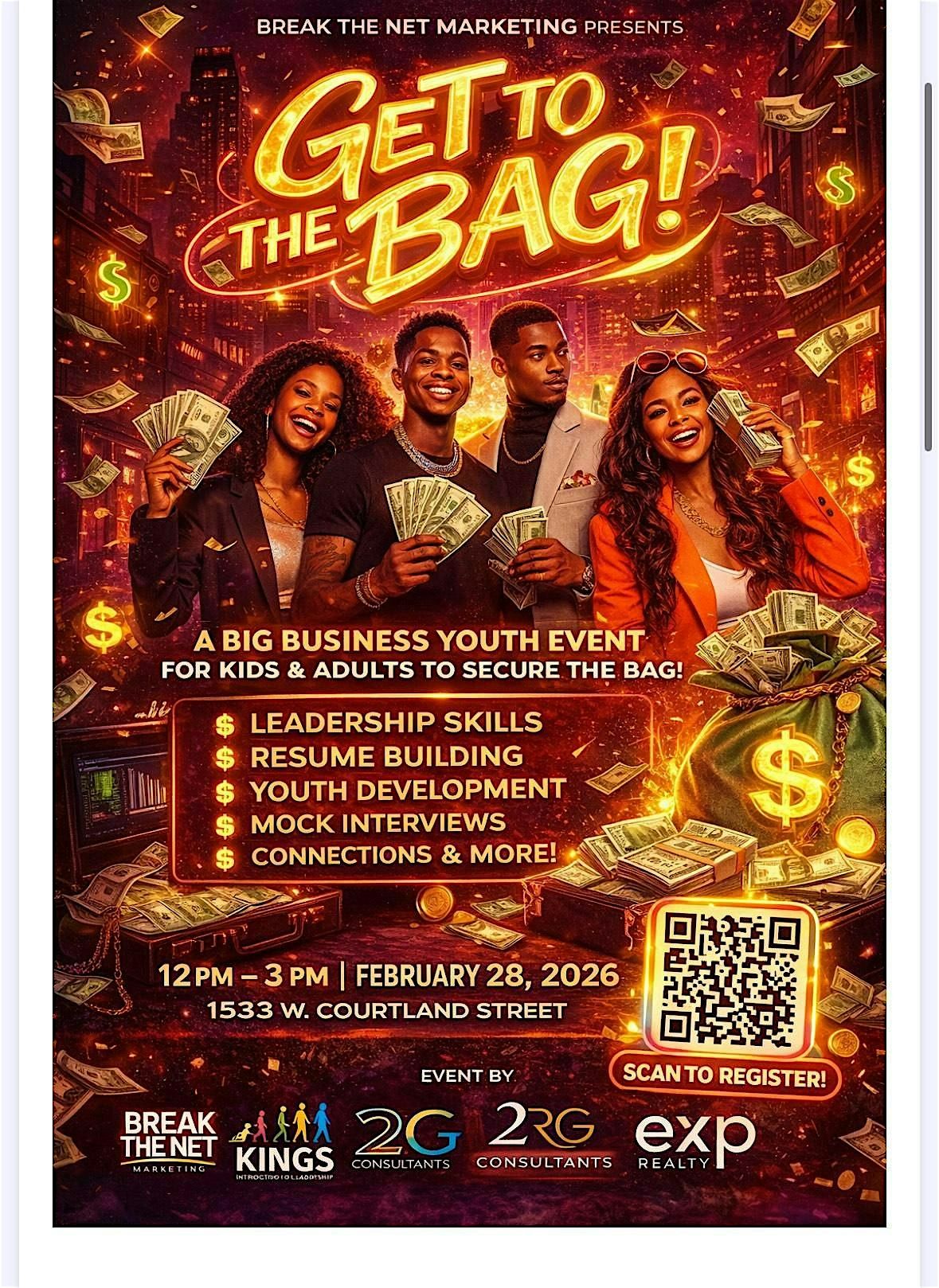 Ready to level up your hustle? Join us in person for Get to the Bag β a fun, laid-back event all about chasing that paper and making moves. Whether you're grinding on your side hustle or just want some inspo, this is the spot to be. Don't miss out on the vibes and connections!
