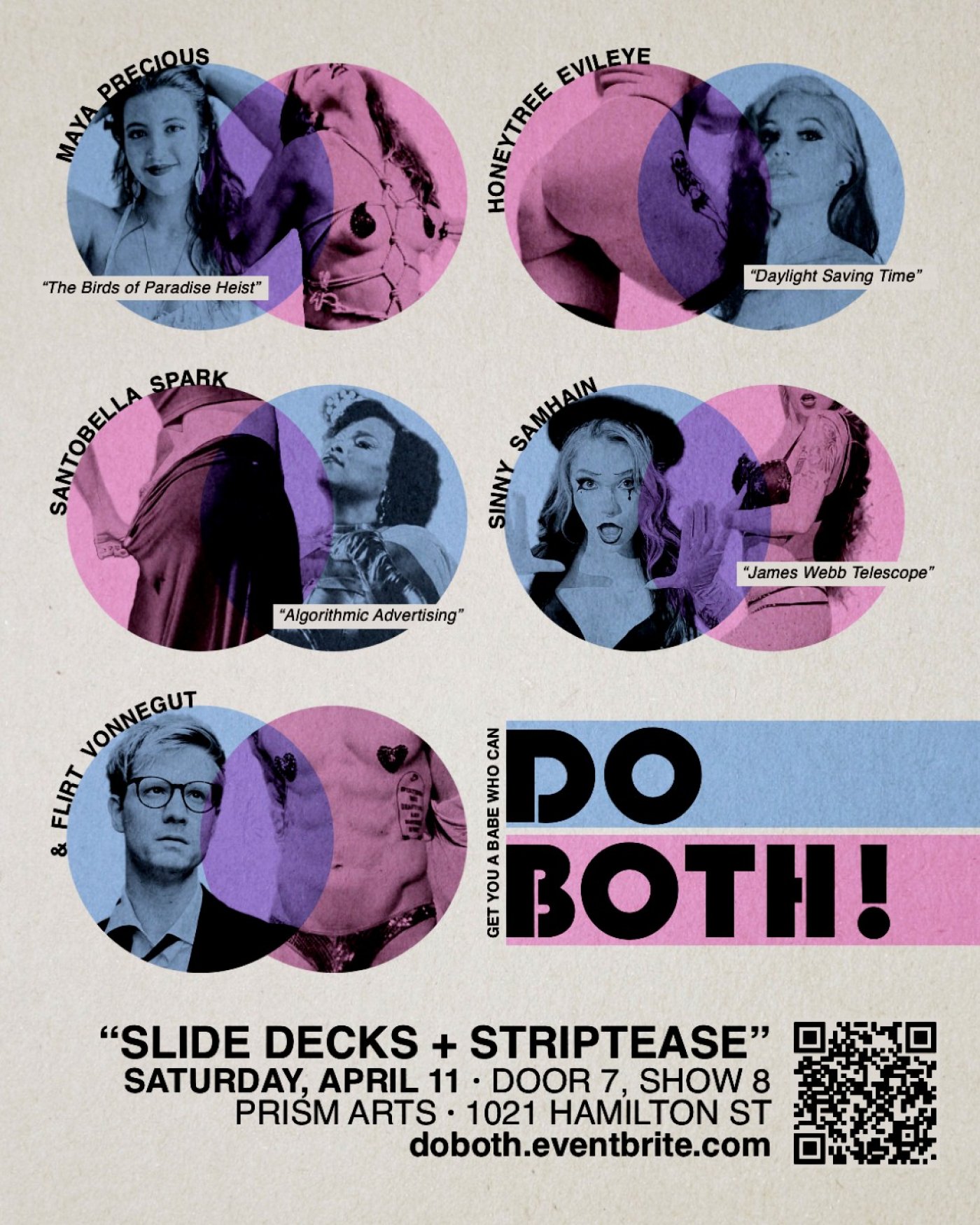 Proving that we can be both sexual and intellectual, Do Both combines lightning talks and burlesque- by the same performers. In the first half, performers will speak on a topic of their expertise and in the second half they'll serve up the tease!