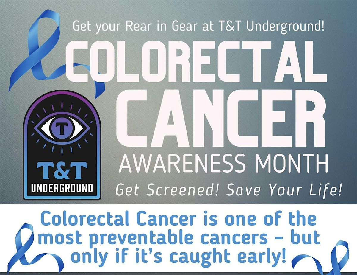 Get your rear in Gear at T&T Underground! We are coming together with Belle Toi Salon & Spa to raise awareness for Colorectal Cancer!