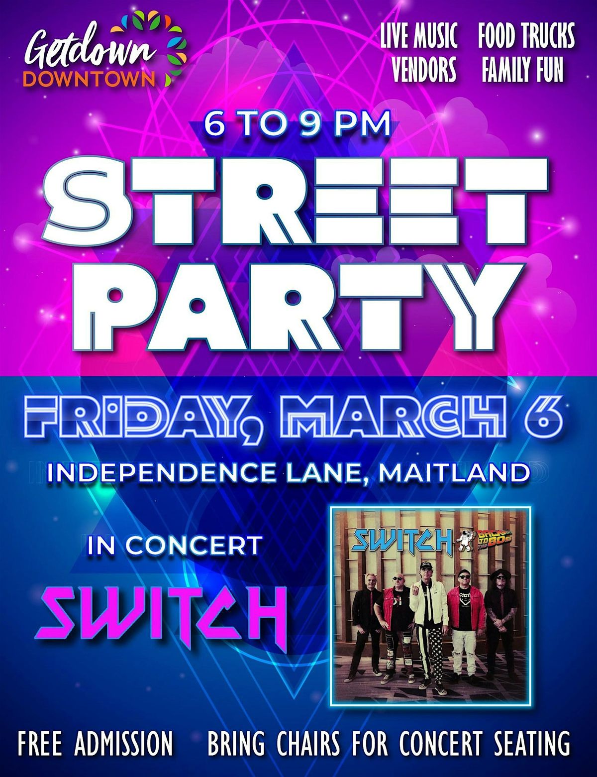 Maitland's Getdown Downtown street party returns from 6 to 9 p.m. Friday, March 6, on Independence Lane with live music from the band Switch, food trucks, vendors and a bounce house.Admission is free. Bring chairs for seating in front of the stage.