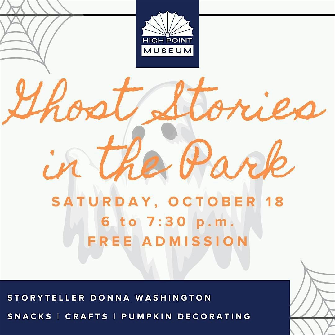 Join us for our 14th Annual Ghost Stories in the Park with snacks, crafts and pumpkin decorating from 6 to 6:30 p.m. Professional storyteller, Donna Washington will tell spooky, but not too scary tales for the young and old from 6:30 to 7:20 p.m. Free. All ages welcome.