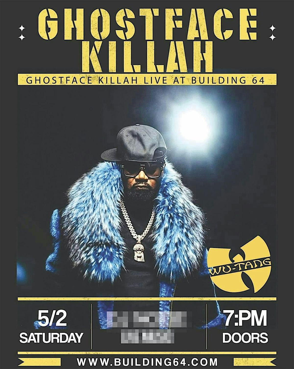 GHOSTFACE KILLAH from WU-TANG Live at Building 64. NAVY YARD N. Charleston MAY 2ND 2026 7PM TILL 2AM.About this Event