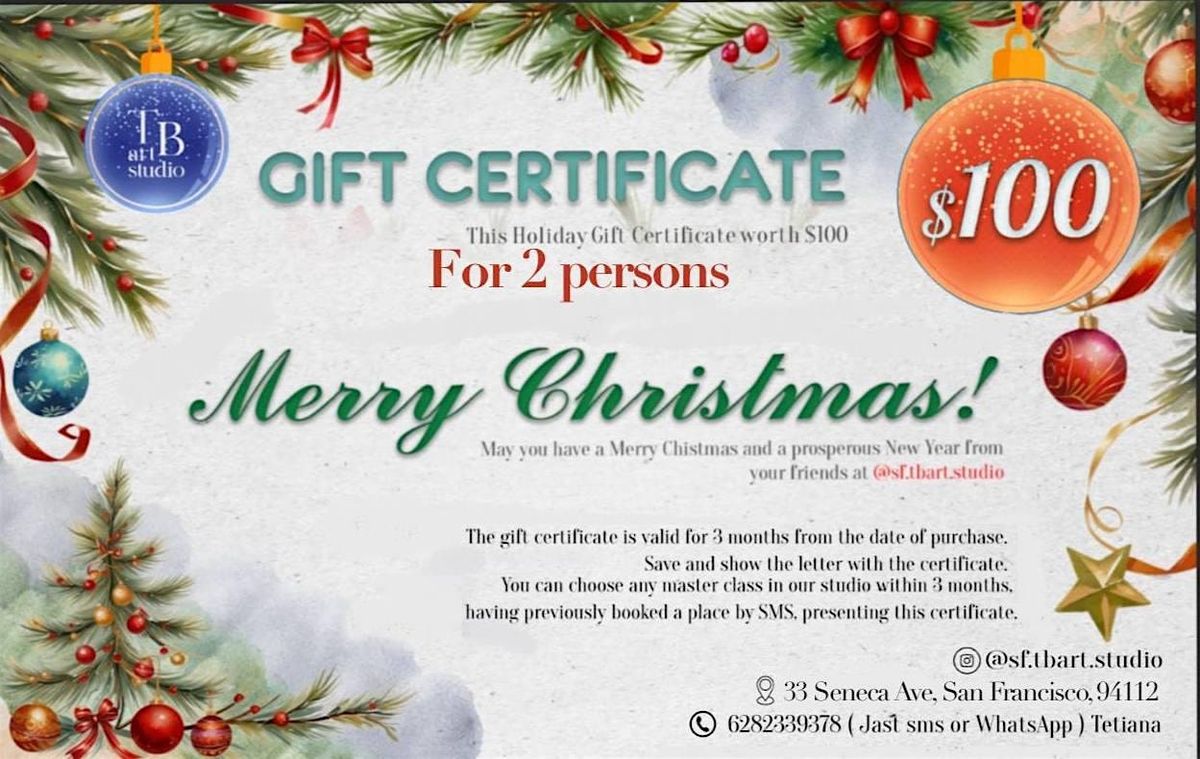 GIFT CERTIFICATE FOR 2 PERSONS Regular Art Workshops in San Francisco