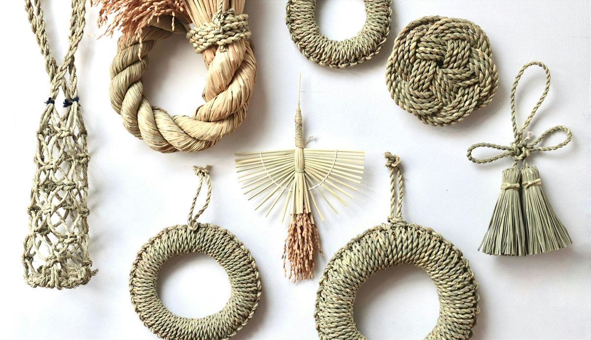 Japanese and British basketry - rice straw, willow, and Akebia vine.