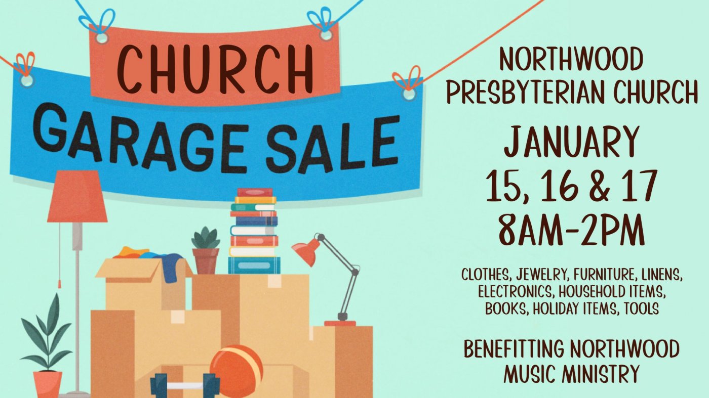 Area's Largest Garage Sale. Northwood Presbyterian Church, 2875 State Road 580, Clearwater, FL 33761. Thursday - January 15, Friday - January 16 and Saturday - January 17 from 8:00 a.m. until 2:00 p.m. Church-wide garage sale with thousands of items including jewelry, clothing, furniture, decor, tools, electronics, toys, collectibles, books and records and so much more. Call 727-709-8237 with questions.