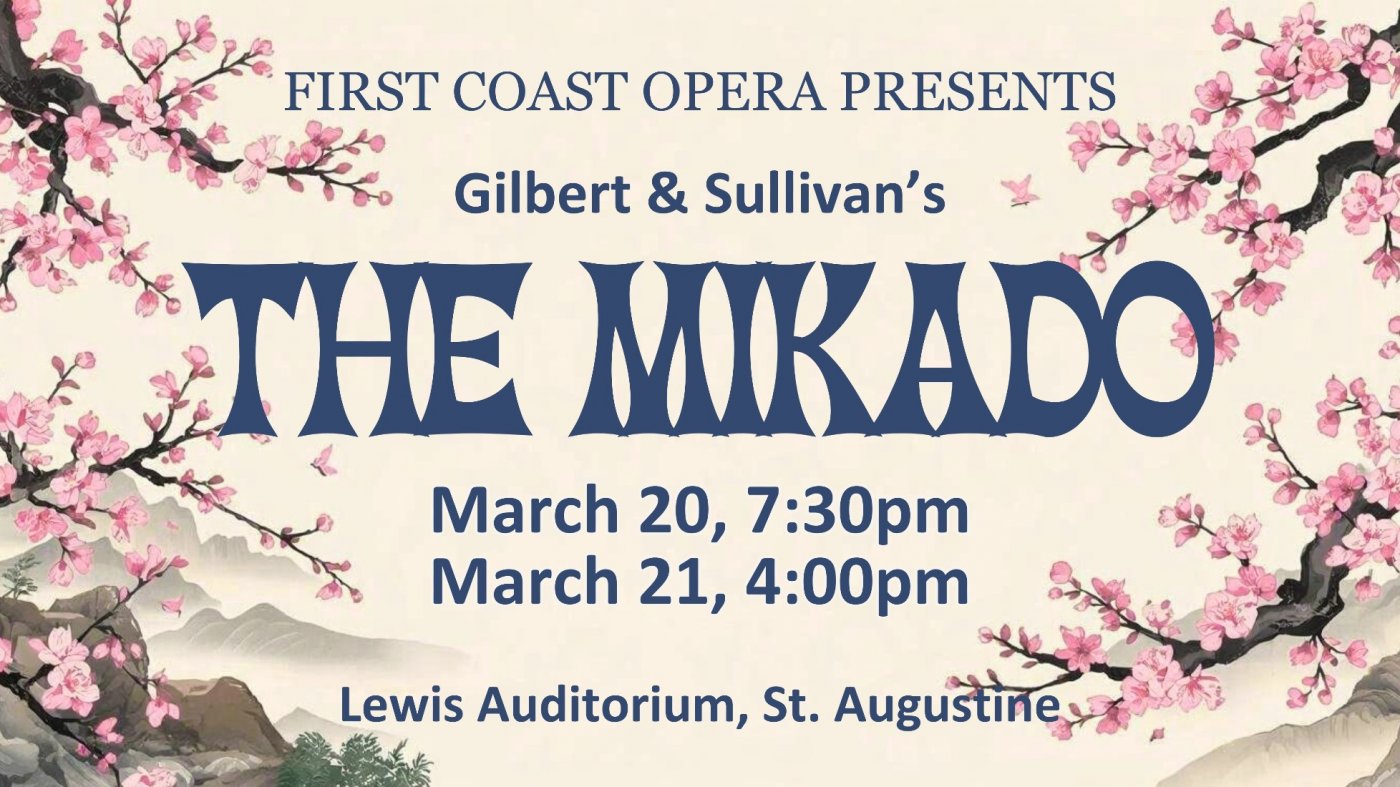 Gilbert & Sullivan's topsy-turvy operetta will be performed live in historic St. Augustine, Florida, March 20-21, 2026.
