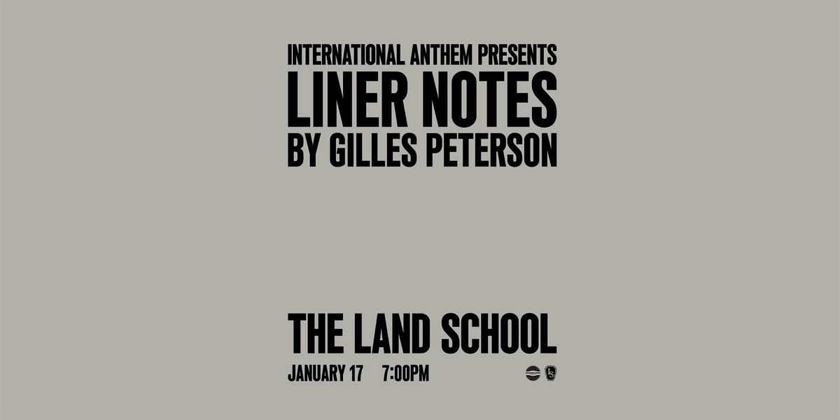 We invite you to share space with us on Saturday, January 17 at 7 PM at The Land School as Gilles Peterson presents Liner Notes (Chicago Edit), organized by our creative partner-in-residence, International Anthem.