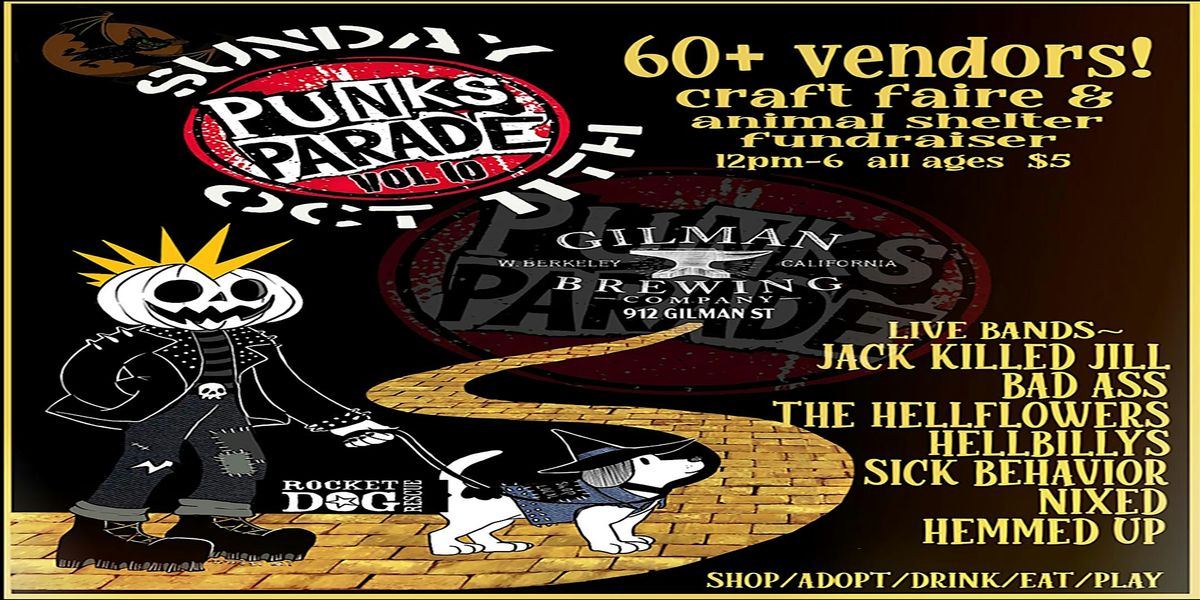 Join us at Gilman Brewing Company on October 11, 2026 at 12:00 PM (PDT) for a fun day filled with awesome crafts and good vibes! This is volume 10 of our Punks Parade Craft Faire, all while supporting our local animal shelter. Come hang out, shop unique handmade goods from over 60 local vendors, and help out some furry friends. Don’t miss out on great brews, cool people, and a cause that matters! Rocket Dog Rescue and Tiger Heart will be on site with adoptable pups and kittens..