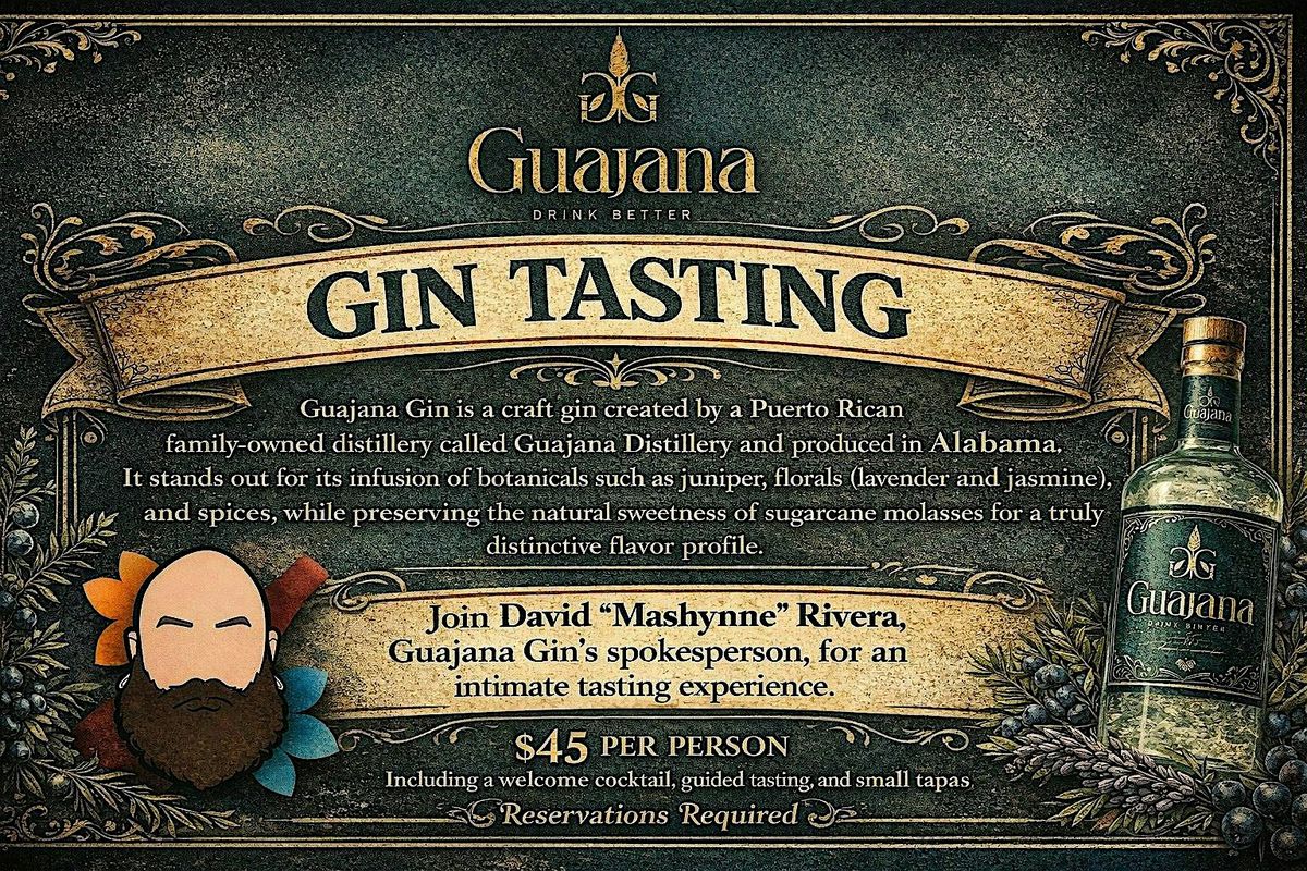 Get ready for a fun night out with our Gin Tasting Series 2026 featuring the one and only Guajana Gin! This in-person event is perfect for gin lovers wanting to explore unique flavors and enjoy good vibes. Come sip, savor, and learn all about what makes Guajana Gin so special. Don't miss the chance to meet fellow enthusiasts and have a great time in a relaxed setting. Cheers to gin adventures!