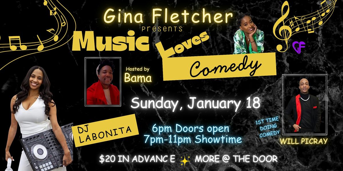Ready to laugh & groove? Gina Fletcher presents the best of music & comedy in one fantastic venue. Sounds by DJ Labonita. Hosted by Bama!About this Event