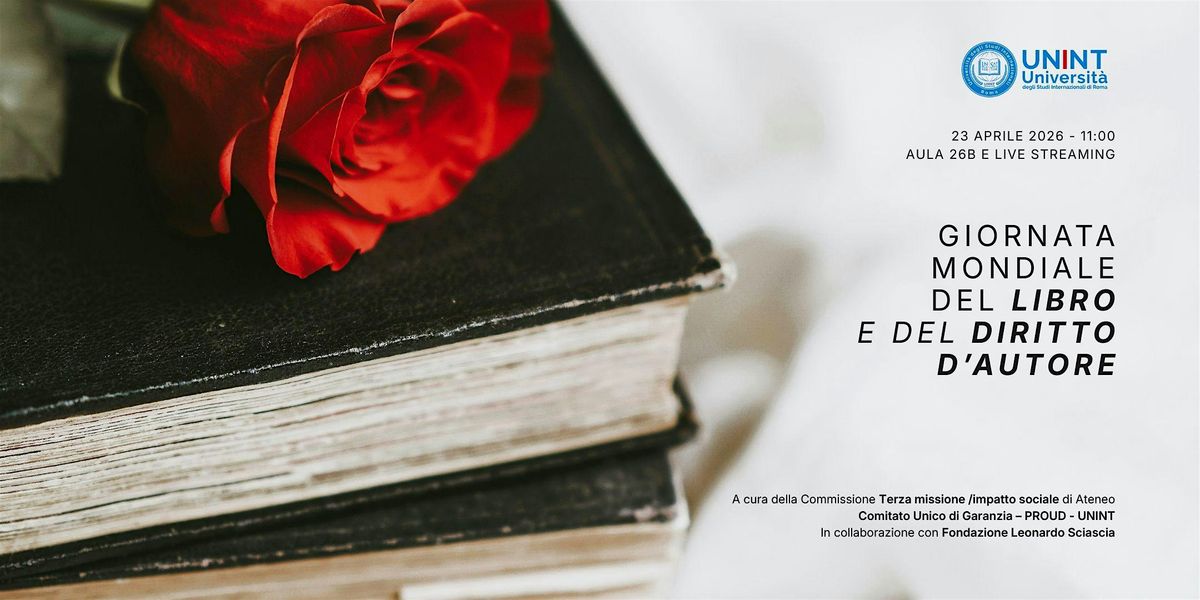 L’Università degli Studi Internazionali di Roma – UNINT in occasione della Giornata mondiale del libro e del diritto d'autore organizza un evento che si terrà il 23 aprile a partire dalle ore 11:00 in aula presenza e in live streaming. L'evento è a cura della commissione terza missione/impatto sociale di Ateneo e del comitato unico di garanzia PROUD di Ateneo, in collaborazione con la Fondazione Leonardo Sciascia.